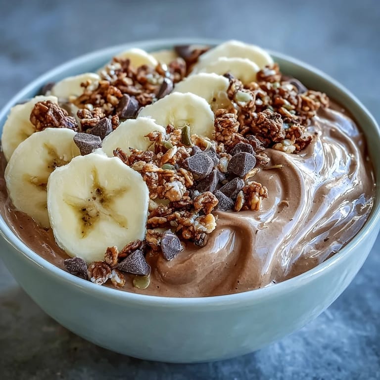Save My blender died halfway through making breakfast one Saturday, and I had to finish this smoothie bowl in my food processor. It turned out thicker, creamier, almost like soft serve ice cream, and I never went back to the old method. The frozen banana chunks hit the blade with that satisfying thunk, and within minutes, the kitchen smelled like a chocolate peanut butter milkshake. Now I make these bowls on mornings when I need something that feels indulgent but won't slow me down.