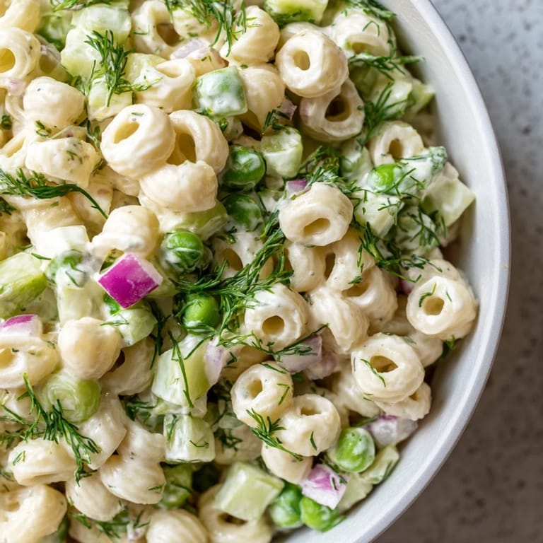 Save My neighbor Mary brought this to our block party last summer, and I spent the entire evening hovering near the bowl, trying to figure out what made it so addictive. The combination of cool pasta, bright pickle tang, and that creamy dressing just works in ways I didn't expect from a pasta salad. Now it's the first thing people ask me to bring to any gathering.