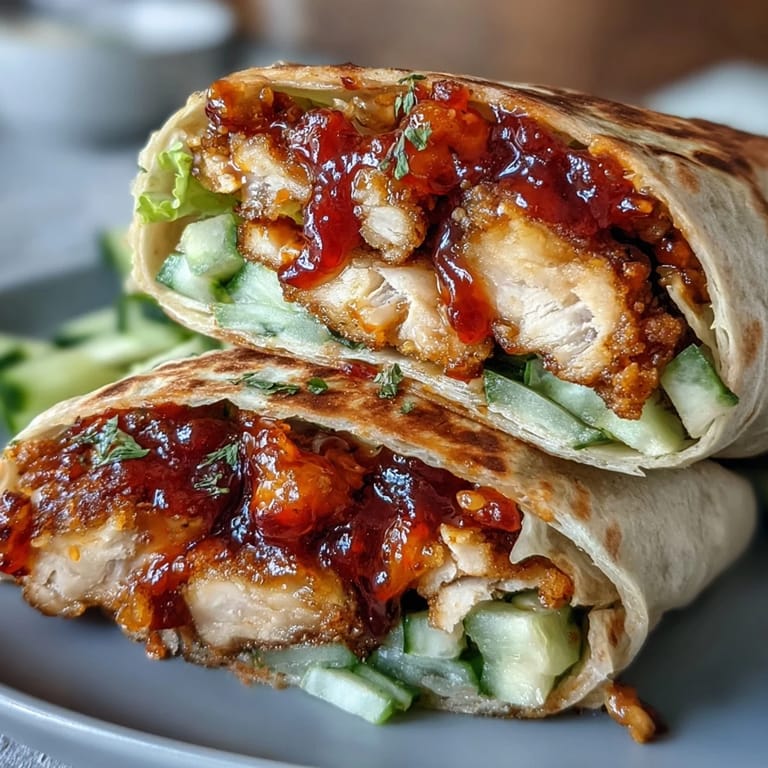 Save My neighbor brought over a jar of chili crisp last spring, insisting I try it on everything. I tossed some with honey-glazed chicken on a whim one Tuesday, rolled it into a tortilla with whatever vegetables were left in the crisper, and stood at the counter inhaling the thing in four bites. The sweetness cut through the heat just enough to keep me reaching for another bite, and the crunch from the crisp and the vegetables made every mouthful feel alive. I have been making these wraps ever since, tweaking the ratio until the sauce clung to the chicken like a glossy, spicy-sweet glaze.