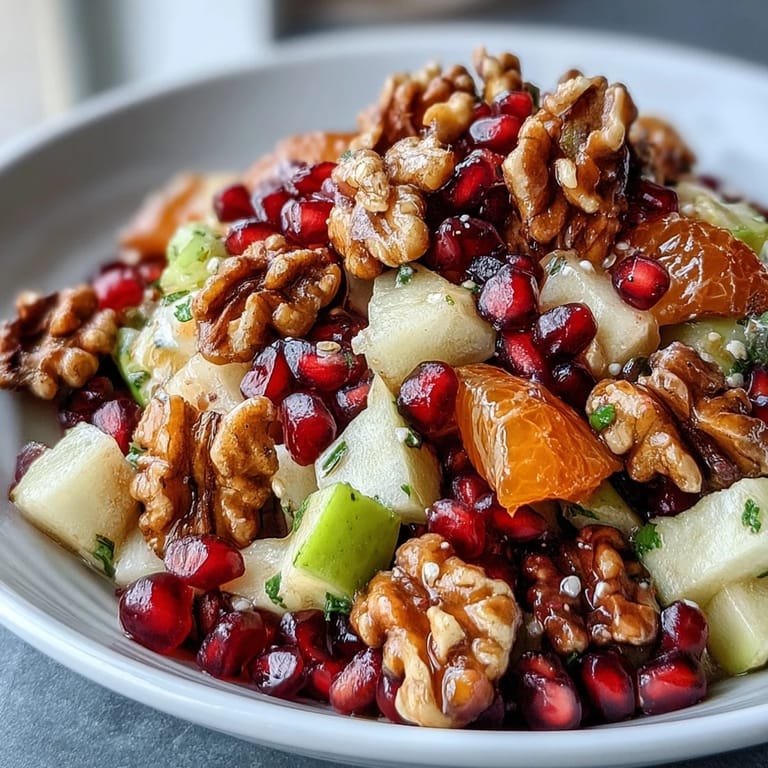 Save My neighbor knocked on my door one December afternoon with a pomegranate in hand, insisting I try her winter salad before the holiday rush swallowed us whole. I was skeptical—fruit salads felt summery, nostalgic, belonging to picnics and June afternoons. But the moment those ruby seeds hit my tongue alongside the crisp snap of walnuts, something shifted. It tasted like jewels and sunlight in the middle of gray days, and I understood why she'd made the trip.