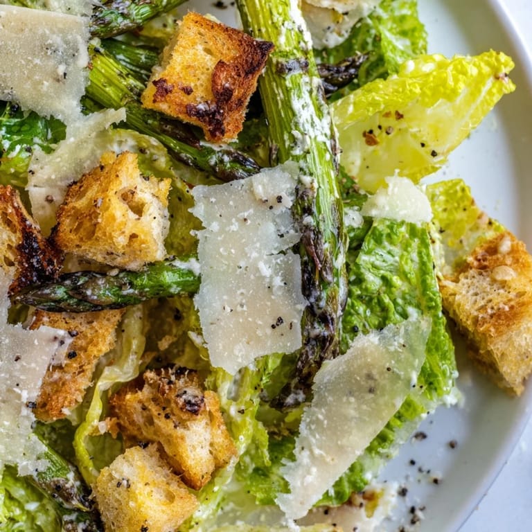 Save Last spring I found myself at a farmers market standing before a mountain of asparagus so fresh the stems snapped like green beans. The farmer laughed when I asked for his favorite preparation method and simply said 'heat and salt.' I went home and decided to give those humble spears the Caesar treatment, turning them into something unexpected. Now it is the salad I make when I want people to think I tried harder than I actually did.