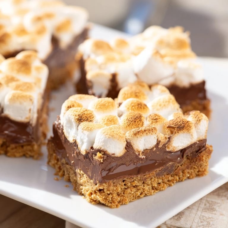 Save There's something about s'mores that pulls you straight back to being a kid again, but I wanted that feeling without the inevitable marshmallow-on-clothes situation. One late afternoon, I was testing recipes in my kitchen when the smell of toasting marshmallows hit me from the oven—suddenly my kitchen felt like a campfire, and I realized I'd stumbled onto something special. These bars deliver every layer of that campfire magic: the buttery graham cracker base, that moment when chocolate softens, and marshmallows turning golden and slightly crispy on top. It's s'mores without the stick, without the mess, and honestly, I haven't made them any other way since.