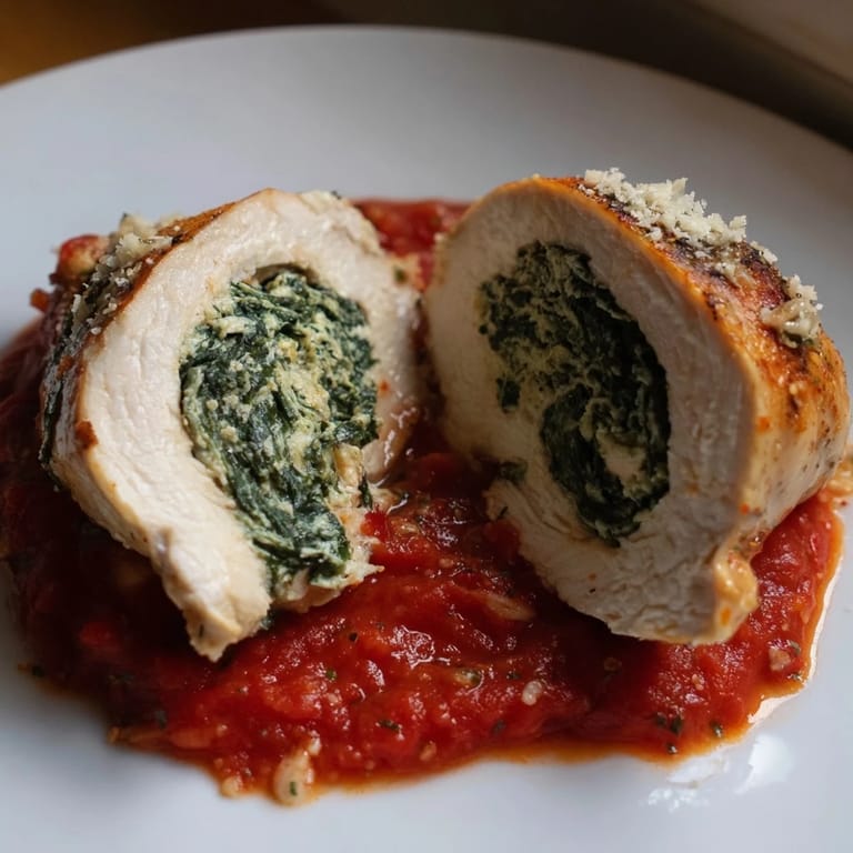 Save My neighbor once handed me a jar of homemade tomato sauce over the fence with a knowing smile, saying only, Try stuffing chicken with ricotta and spinach. No recipe, no measurements, just that. I stood in my kitchen that evening with four chicken breasts and a hunch, slicing pockets into each one like I'd seen my grandmother do with pork chops years ago. The creamy filling oozed slightly as I seared them, and when the sauce bubbled around the edges in the oven, the smell alone made me understand why she'd been so cryptic. Sometimes the best recipes arrive as whispers, not instructions.