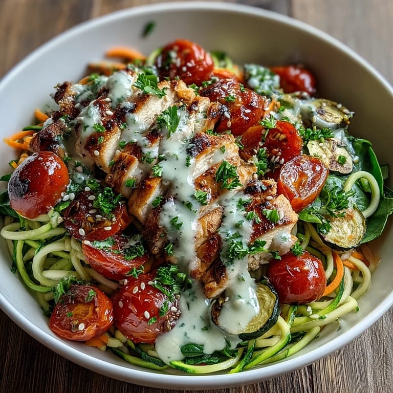 Save My spiralizer sat unused in a kitchen drawer for months until a friend mentioned she'd been eating vegetable noodles for lunch without missing pasta one bit. Skeptical but curious, I pulled it out on a random Tuesday evening when my fridge held zucchini, sweet potato, and leftover chicken. What emerged was this bright, nourishing bowl that felt like comfort food dressed in greens, and suddenly I understood why she couldn't stop talking about it.
